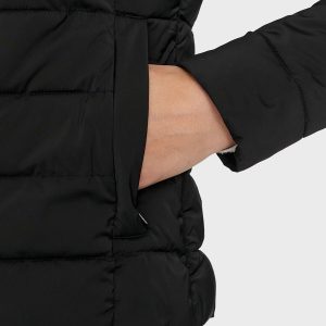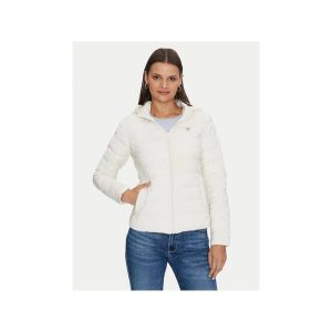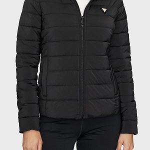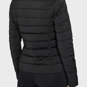 •  Streç kumaştan, yatay kapitoneli, uzun kollu şişme mont.