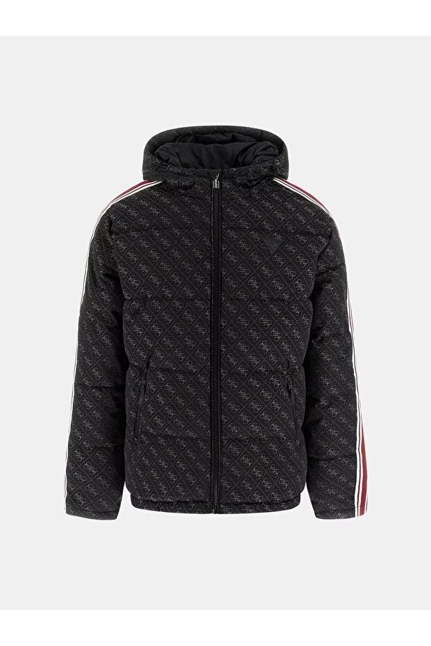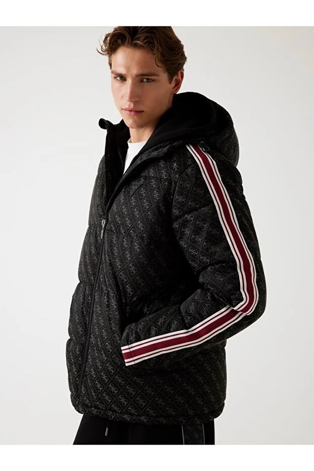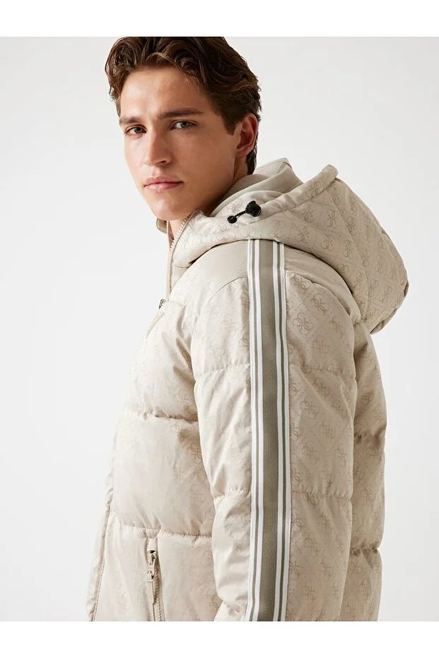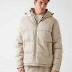 - Pamuklu kumaştan kapüşonlu şişme mont.