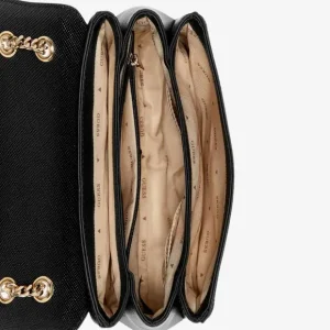 - Zincirli ve deri karışımı omuz askısı, şıklığına lüks bir hava katar.