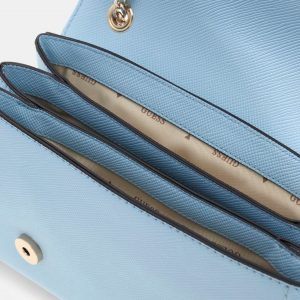 Omuz askısında logolu charm.