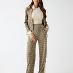 Kahverengi çok renkli renginde giyinen model 178 cm boyundadır
