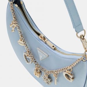 Önde logo detaylı charm’lar ve mücevher aplike ile zincir.