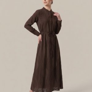 KAYRA Bel Bağlamalı Düğme Detaylı Elbise 23060