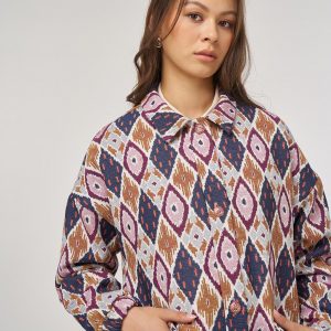 Kayra Geometrik Desen Bomber Ceket, şık tasarımıyla dikkat çekmektedir. Canlı deseni ve rahat kalıbıyla günlük kullanım için uygun olan ceketi; pantolon, denim, tunik, küpe ya da aksesuarlar ile destekleyebilirsiniz.