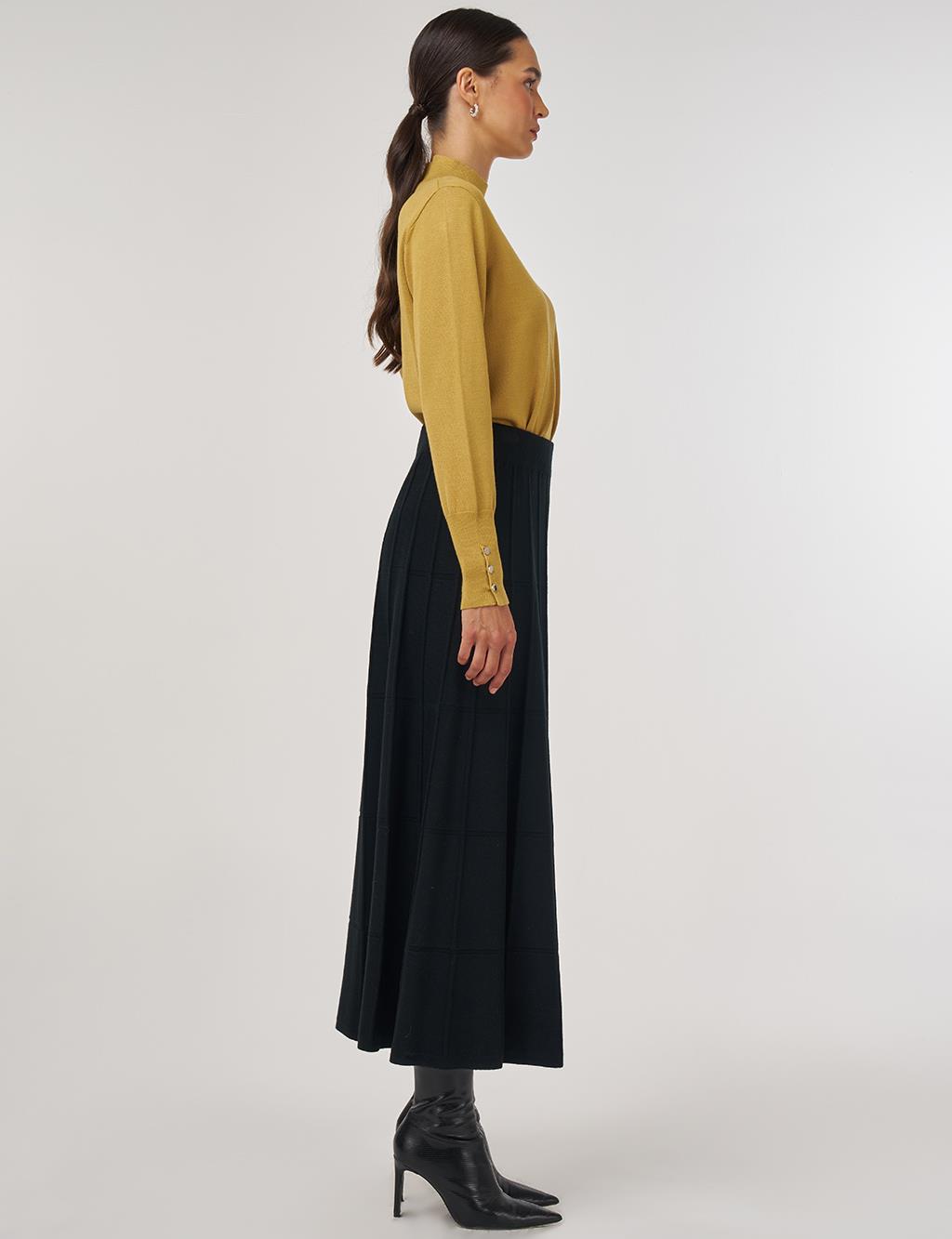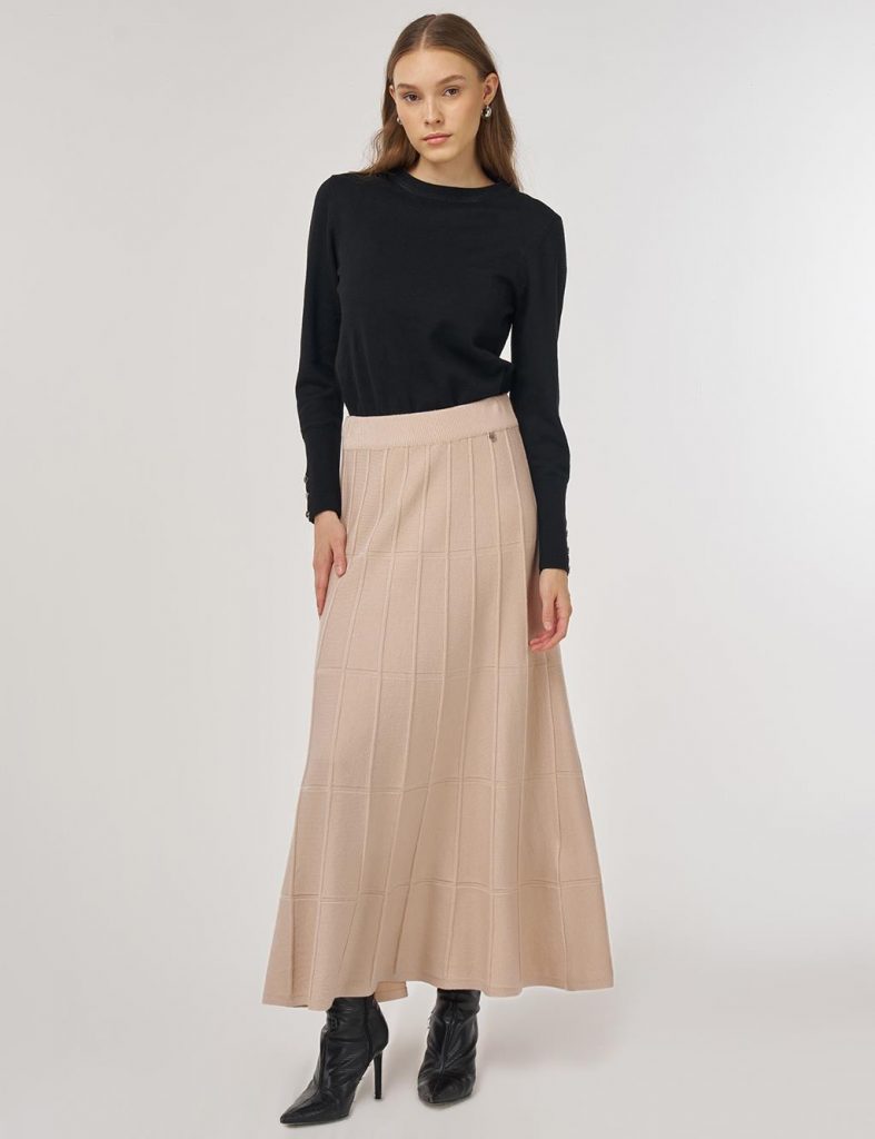 Kayra Dikiş Detaylı Triko Etek, rahat kalıbıyla öne çıkmaktadır. Modası geçmeyen parçalar arasında yer alan triko eteği; balıkçı yaka triko tunik, triko kazak, küpe ya da çantalar ile kombinleyebilir; günlük ya da haftasonu şıklığı oluşturabilirsiniz.