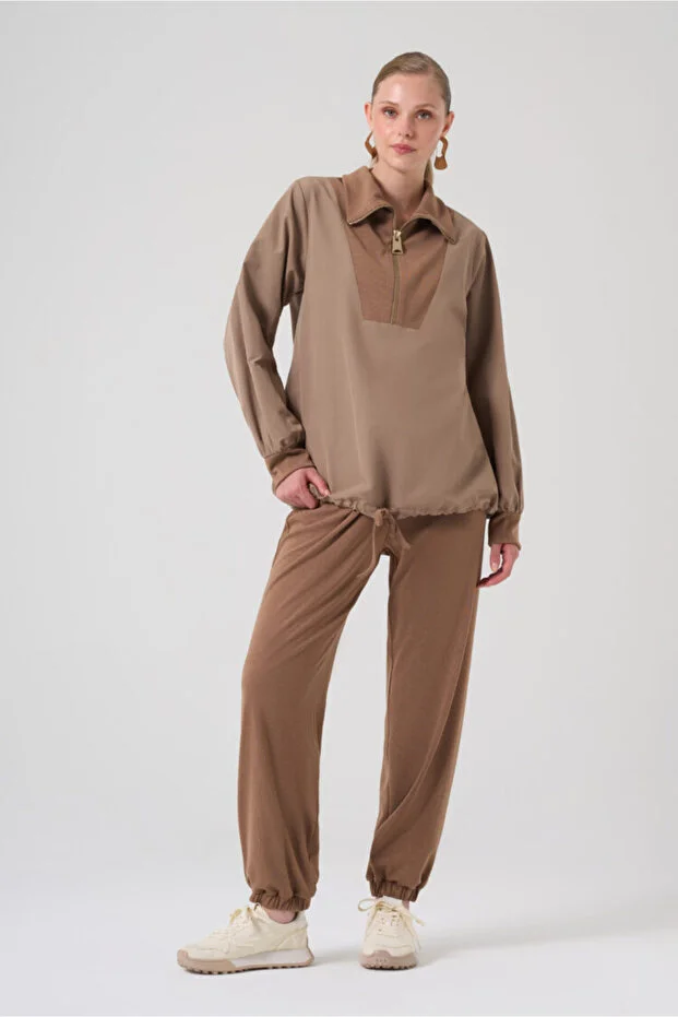 MASCARA Fermuarlı Yaka Taba Bluz 211411 Taba
