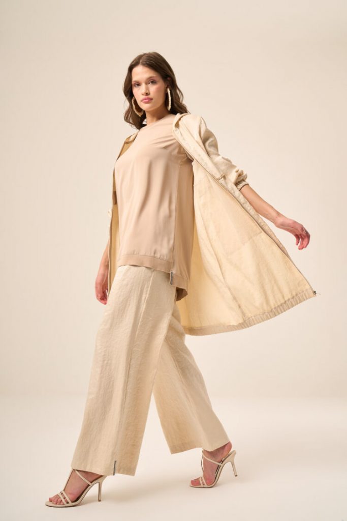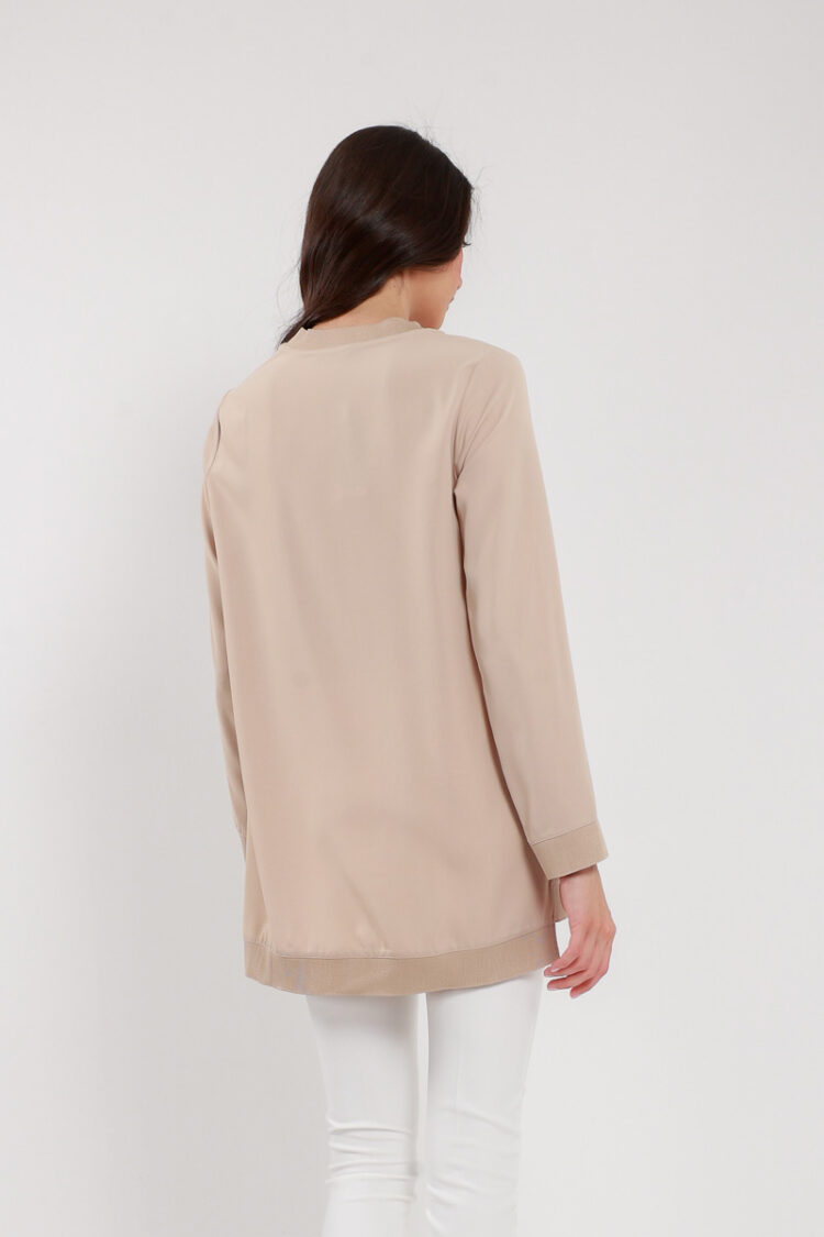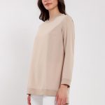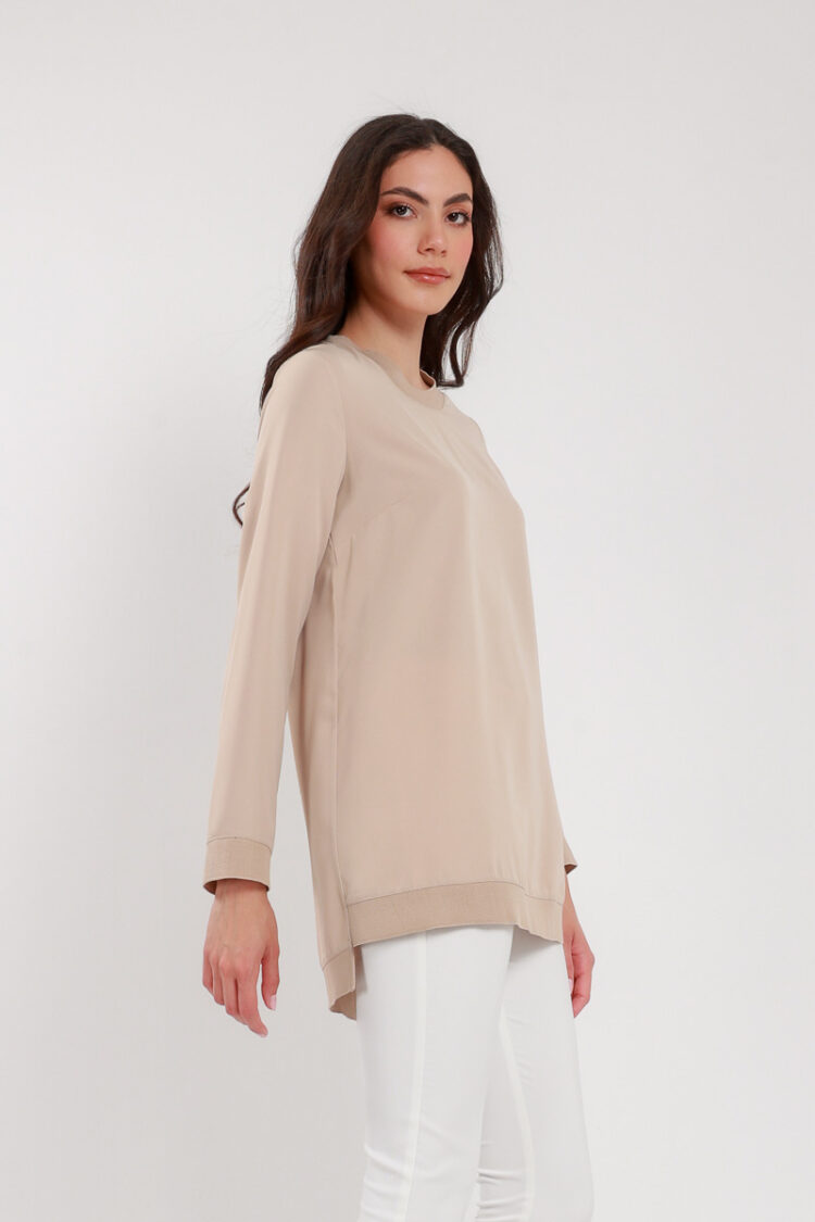 Ürün Bilgisi, bisiklet yaka, uzun kollu, ribanalı , taş renk bluz.