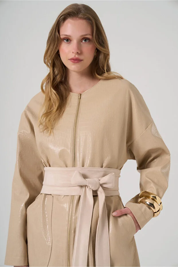 MASCARA Kemerli Deri Görünümlü Ceket 110132 Bej