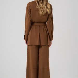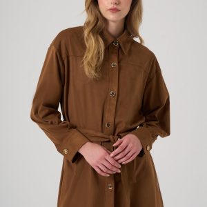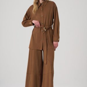 Ürün Bilgisi, Kuşaklı, kolları düğmeli, uzun taba renk gömlek