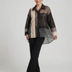 MİANOTTE Kendinden İşlemeli Transparan Ceket 9024