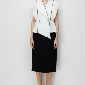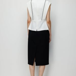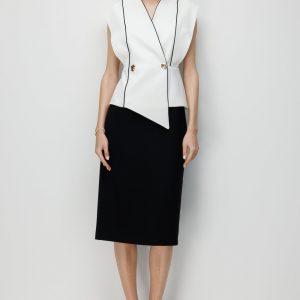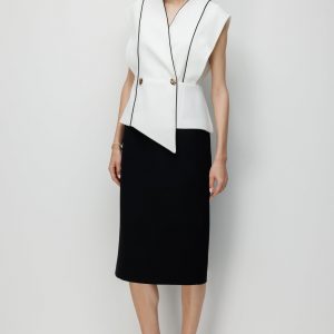 - Ekru ve siyah renk bloğu, zamansız kontrast ve çarpıcı görünüm