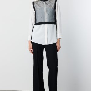 MODAİLGİ Taş İşlemeli Organze Süveter Gömlek Takım 10001
