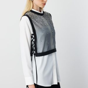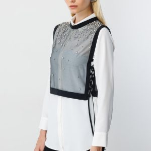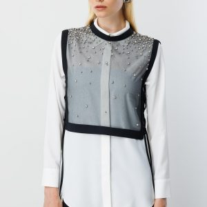 • Süveter kısmında taş işlemeleriyle zarif ışıltı
