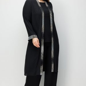 Modailgi Yaka Bantı ve Manşeti Taş Detaylı Uzun İkili Takım 40363