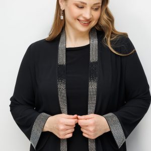 • Diz altına kadar uzanan ceket/hırka boyu ile sağlanan asil ve korunaklı duruş.