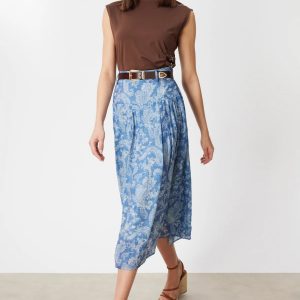 ON TRİKO  Beli Kemerli Desenli Midi Etek