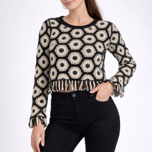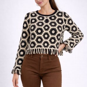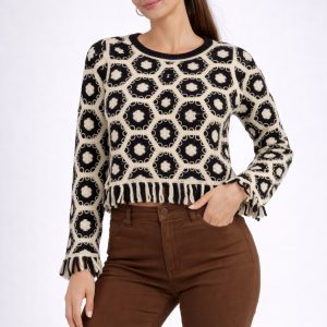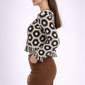 Kol ve Bel Saçak Detaylo Örgü Kazak