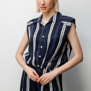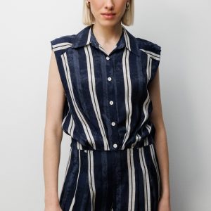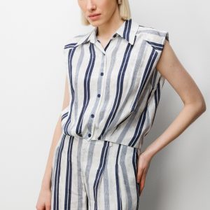 ON TRİKO On Çizgi Desenli Crop Gömlek