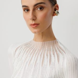Manken Ölçüleri: 1.76 cm 84/61/89 – Manken en küçük bedeni giymektedir.