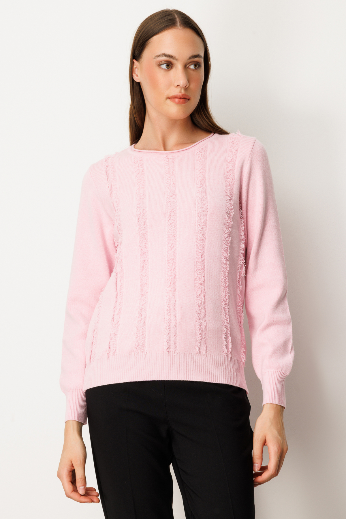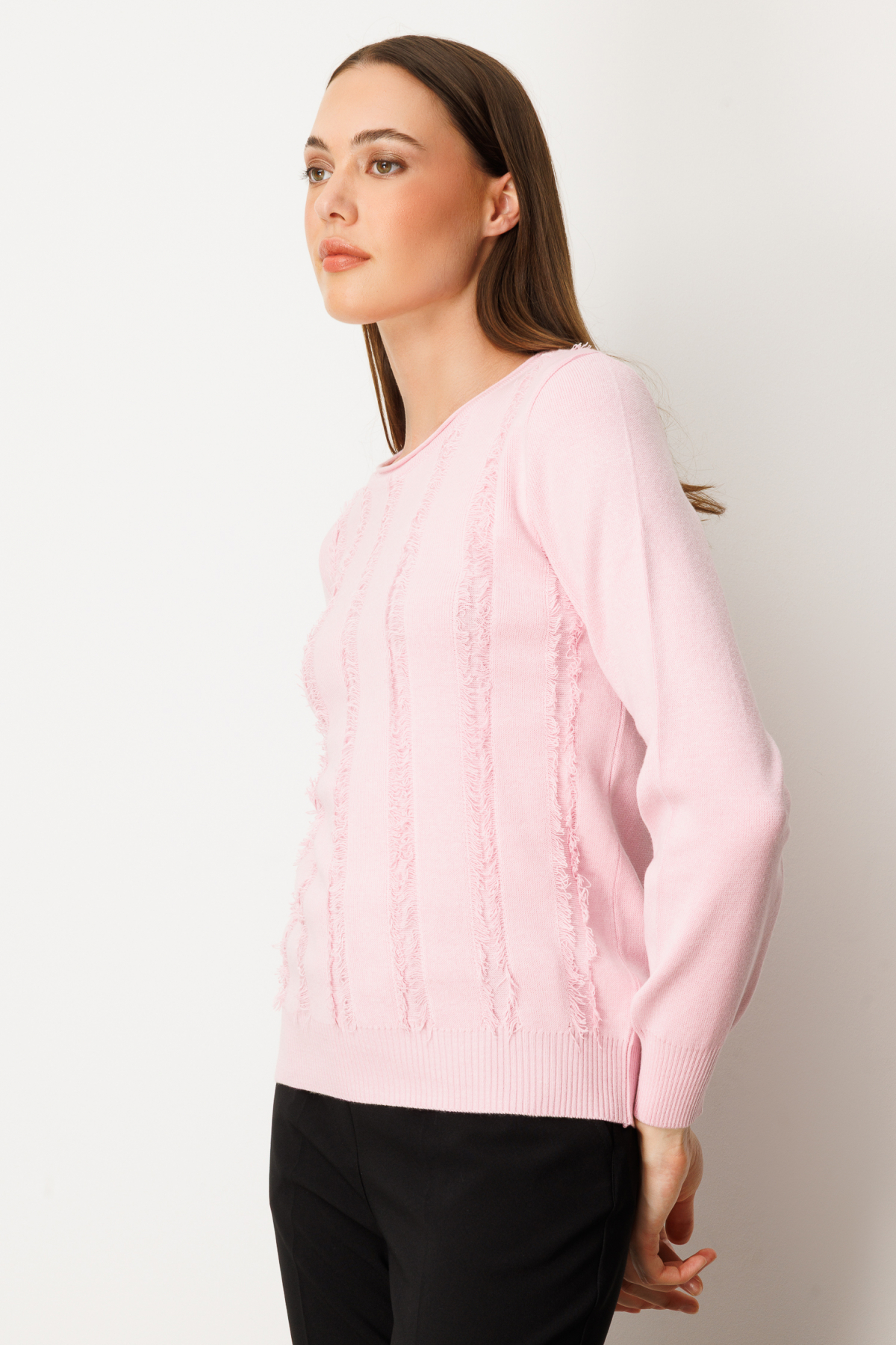 ON TRİKO Sıfır Yaka Püskül Detaylı Triko Kazak 65306 Pembe