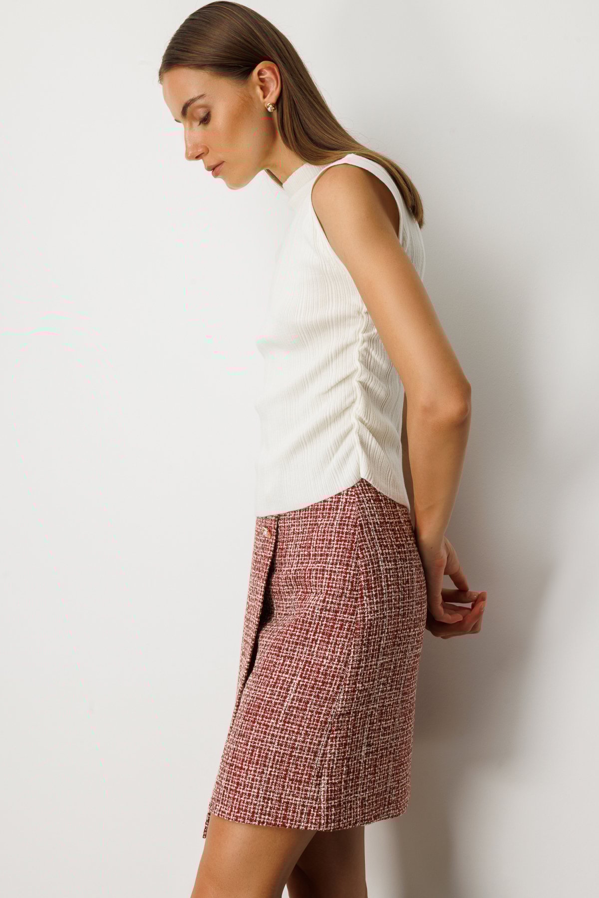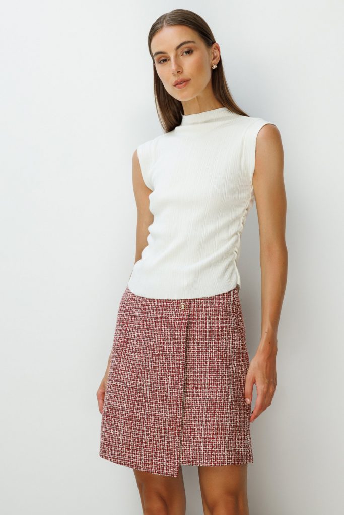 ON TRİKO Yanları Büzgülü Kolsuz Triko Kazak 65355 Krem