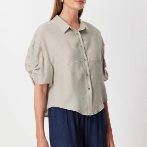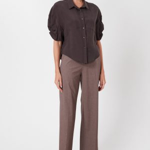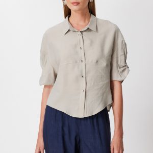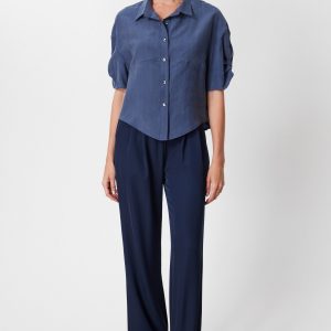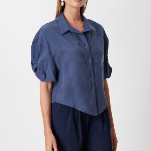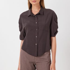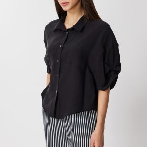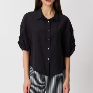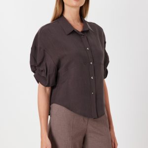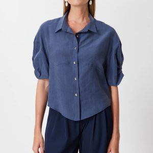 ON TRİKO Kolu Büzgülü Kısa Kollu Gömlek 74319