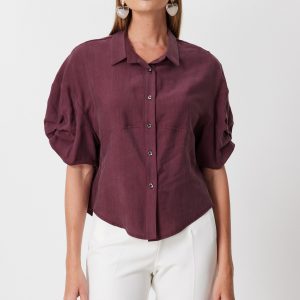 ON TRİKO Kolu Büzgülü Kısa Kollu Gömlek