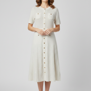ON TRİKO Önü Süs Düğmeli Triko Elbise 70417