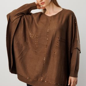 ON TRİKO Taş Detaylı Yarasa Kol Triko Kazak 60301