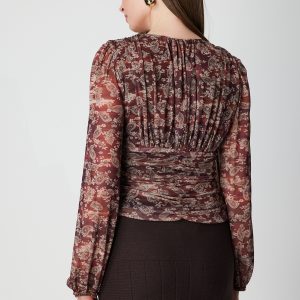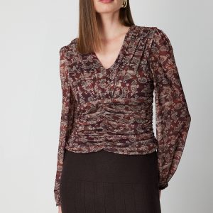 ON TRİKO V Yaka Desenli Şifon Bluz 62302