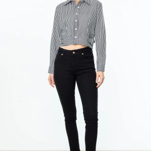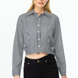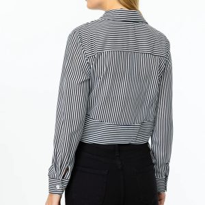 Ürün Özellikleri: Gömlek yaka, uzun kollu, crop, çizgili, yanları kemer detaylı, düğme kapamalı