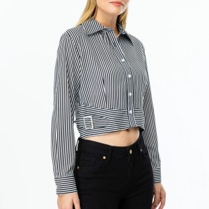 ON TRİKO Yanları Kemer Tokalı Çizgili Crop Gömlek 56330