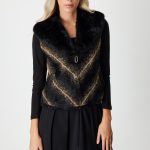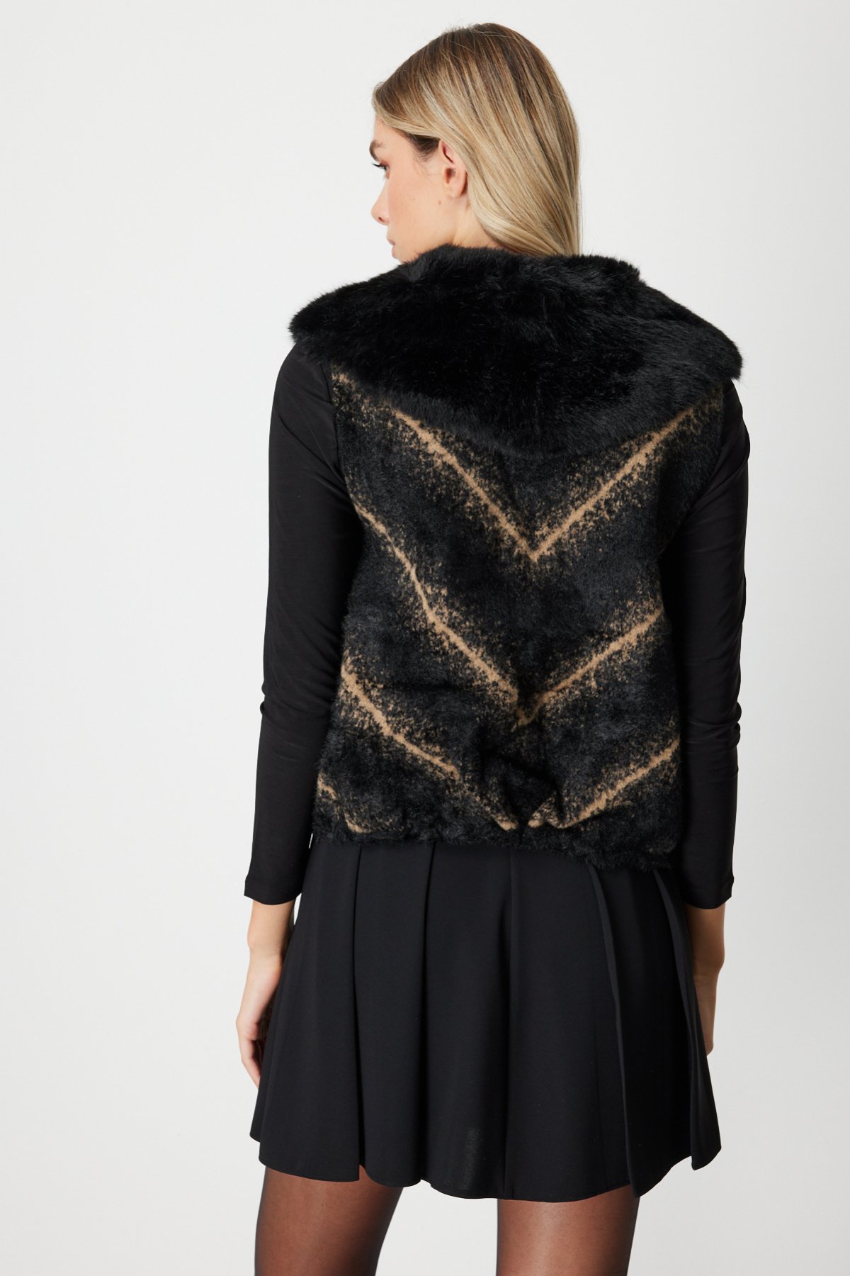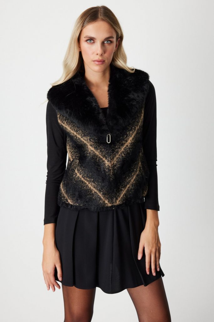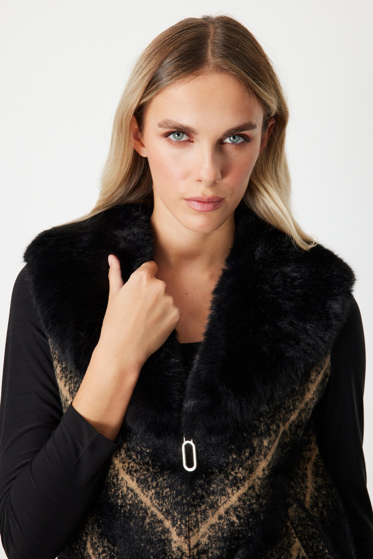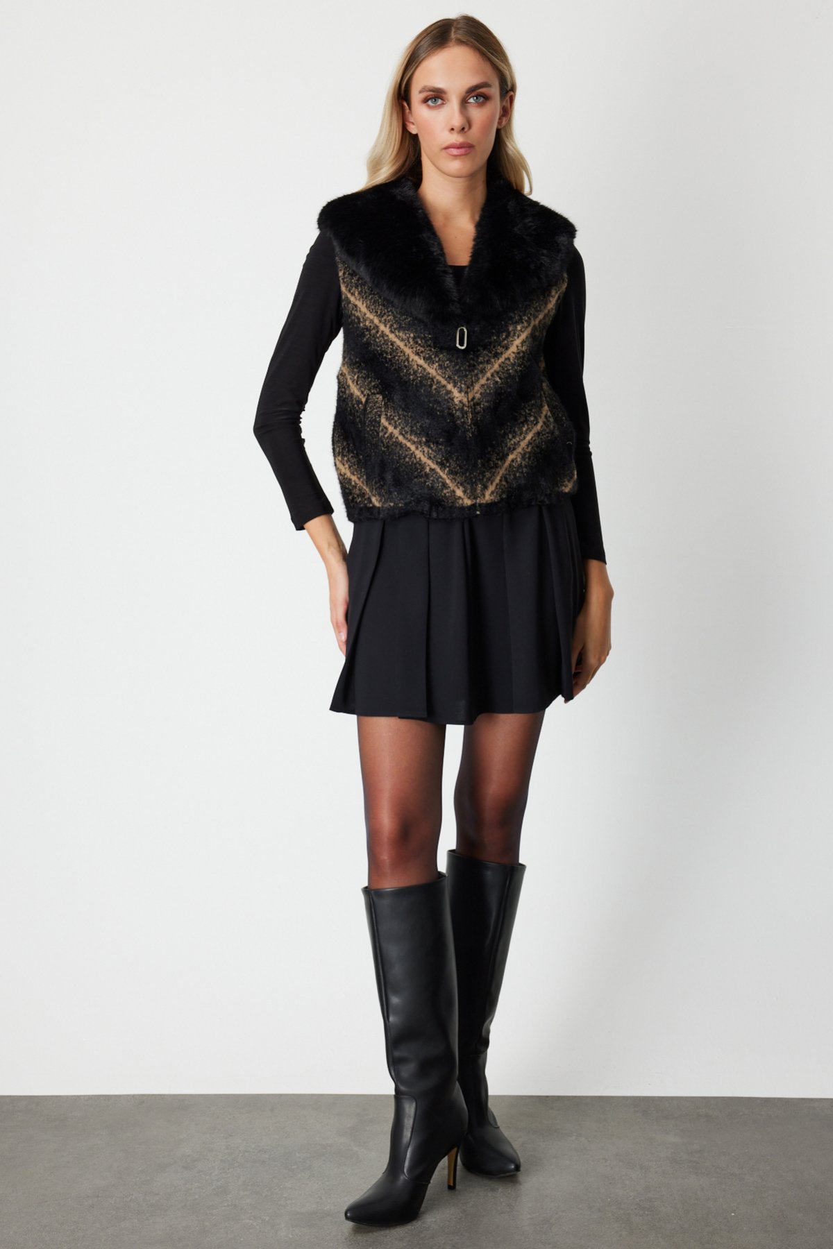 ON TRİKO Desenli Yakası Kürklü Yelek 60915 Siyah