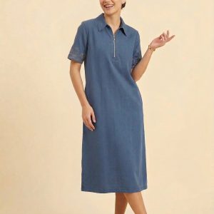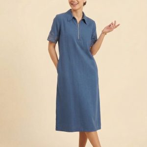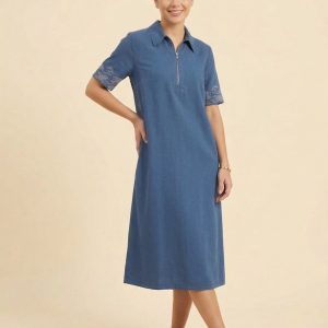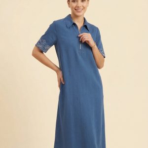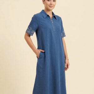 SEDNA Kolları İşlemeli Önü Fermuarlı Elbise 7811