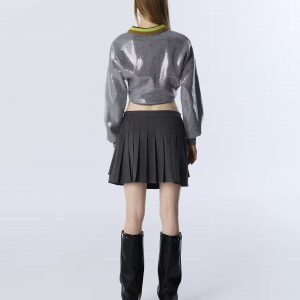 İki parça görünümlü yandan bağlamalı piliseli mini etek