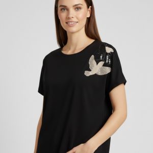 VEDİ Kendinden Kuş İşlemeli T-shirt 7023