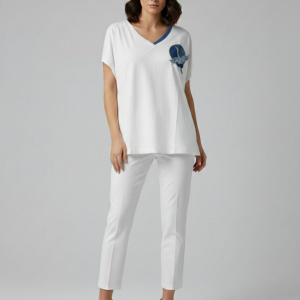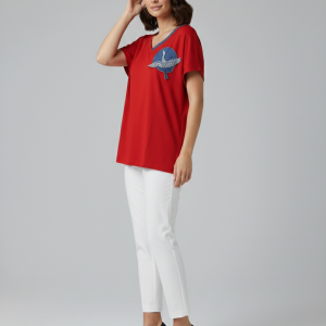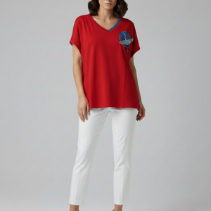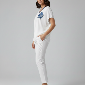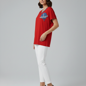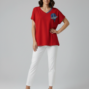 VEDİ V Yaka Boncuk İşlemeli T-shirt7043
