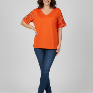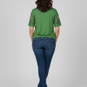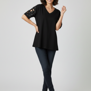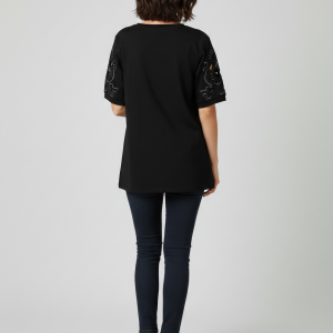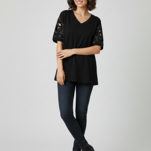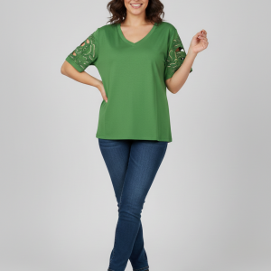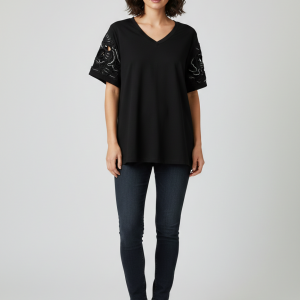 VEDİ V Yaka Kol İşlemeli T-shirt 7025